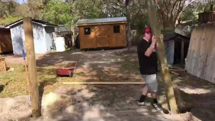 | Продолжаем работы. Монтаж забора начинают от калитки в разные стороны | |