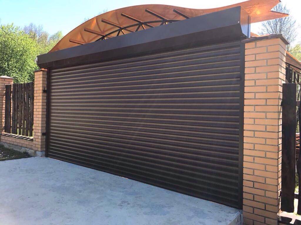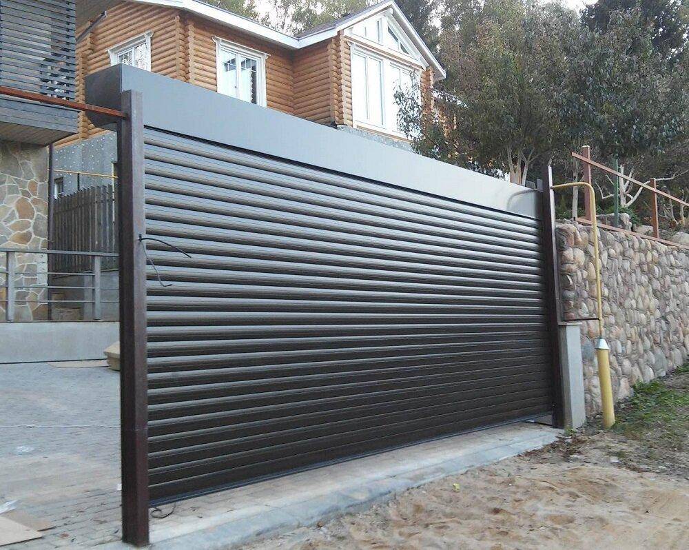 На фото видно эстетичный вид роллетных ворот. Конструкция коробом наружу прочнее варианта расположения каркаса внутрь.
