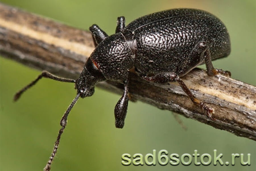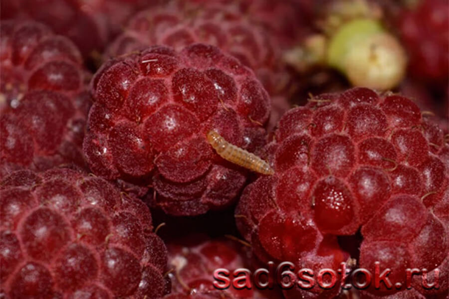 Это серо-коричневое насекомое (Butiridae) с начала до середины лета откладывает яйца на цветках лазящих ягодных растений. Вылупляющиеся беловатые личинки сначала поедают основание ягоды у цветоножки, чтобы проникнуть внутрь и питаться сердцевиной.