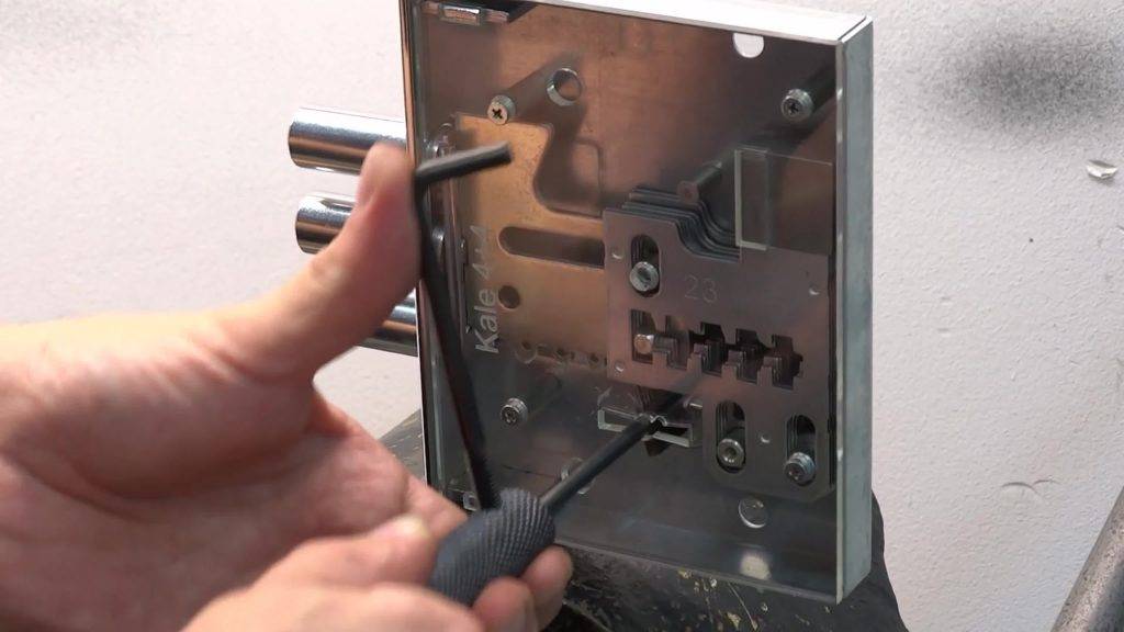 Затем вынимается винт, находящийся в центре языка и запора. Далее следует поменять положение ключа градусов на 40 и следить, чтобы из запорного устройства личинка вышла легко.