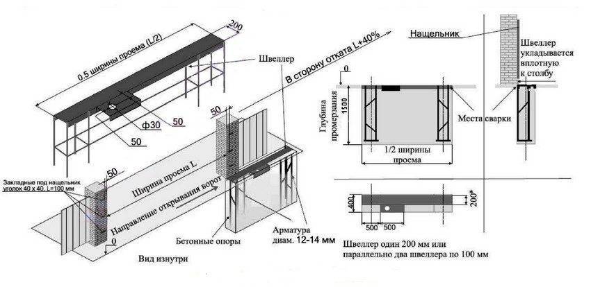 Место расположения опор предъявляет определенные требования к конфигурации каркаса и порядку выполнения монтажа. Прежде чем отдать предпочтение конкретному варианту, следует поискать фото возможного исполнения каркаса ворот и его последующей отделки.