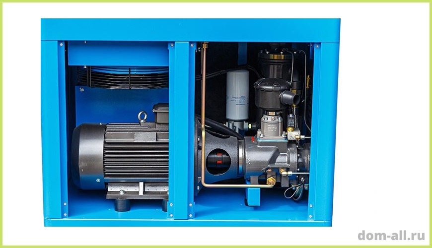 Совет. Благодаря отсутствию трущихся деталей и узлов винтовые компрессоры обладают большим ресурсом эксплуатации, более 100 000 часов.
