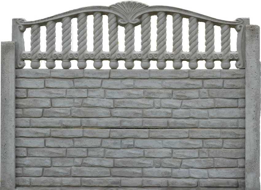 Наиболее доступный для монтажа вариант – наборные секции. Вес отдельно стоящих элементов достигает 3 т. Цена ограды зависит от ряда факторов: конфигурация и размеры конструкционных элементов, их количество, вариант отделки (фактура).