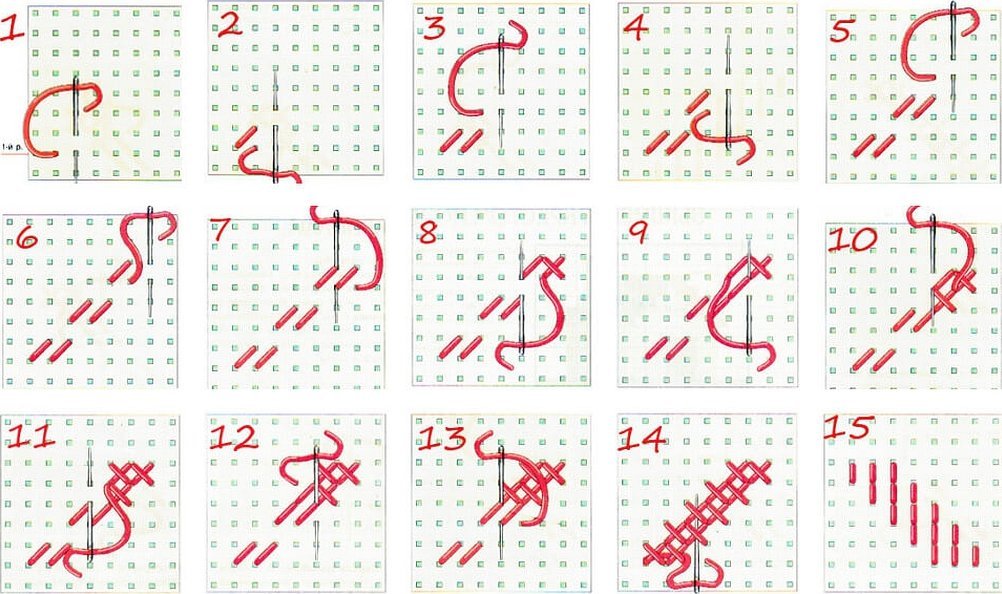 - Перед началом работы белым карандашом расчертить материал 10х10;