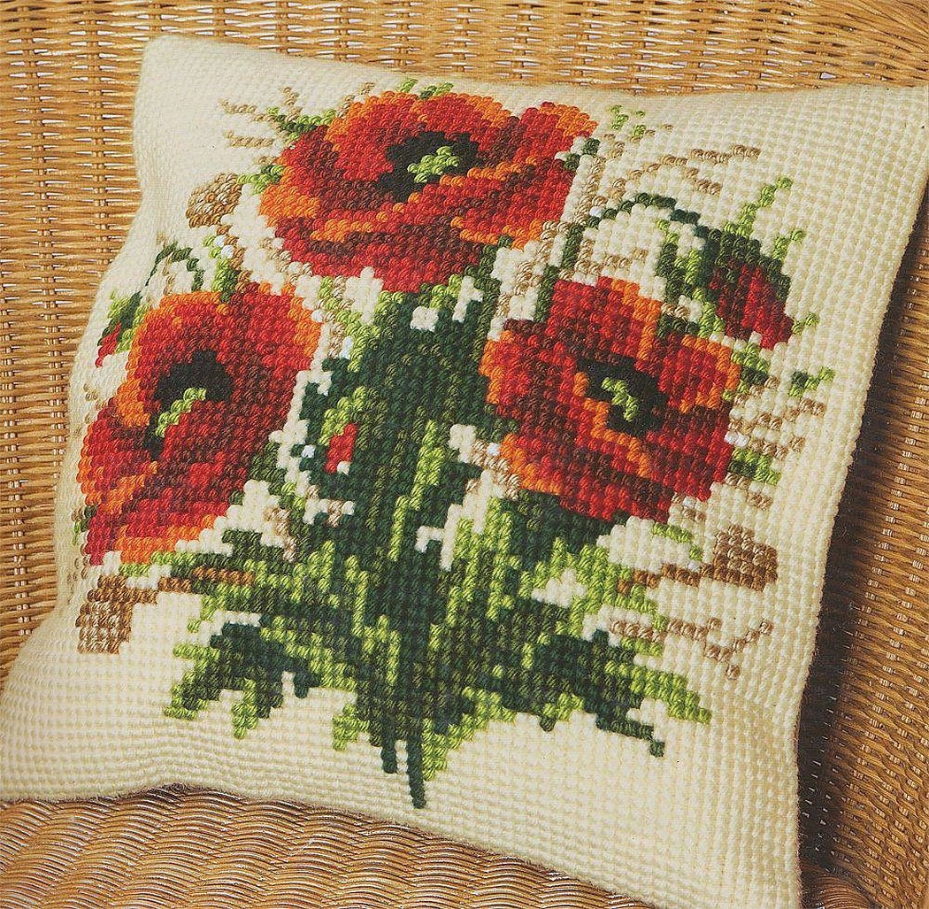 Существует масса схем именно для подушек. Эти цветы впишутся в любой интерьер и прекрасно украсят и создадут уют в квартире. Для небольших подушек идеальны схемы с одним крупным маком, но лепестки вышить нужно несколькими оттенками. Также можно создать несколько бутонов на стебле по всей подушке. Очень ярко и оригинально выглядит букет с маками. Возможна схема с несколькими маками: сочетание распустившихся маков с еще зарождающимися бутонами. Стоит выбрать схему, которая больше приглянулась, и начать работу. Но лучше создать что-то свое. Фантазия безгранична, поэтому стоит этим пользоваться.