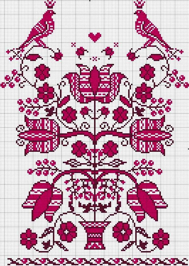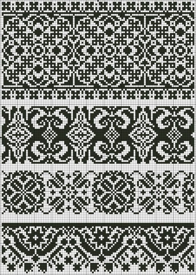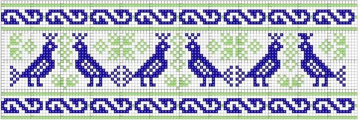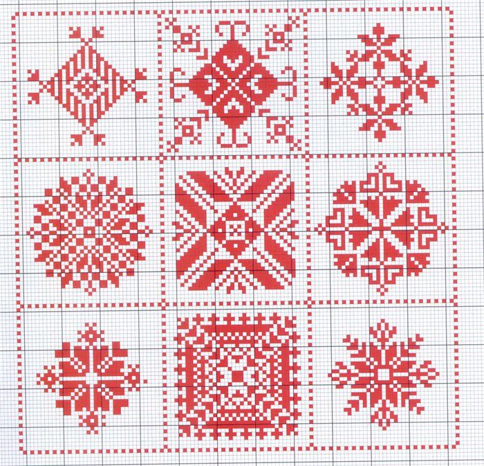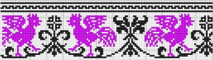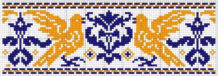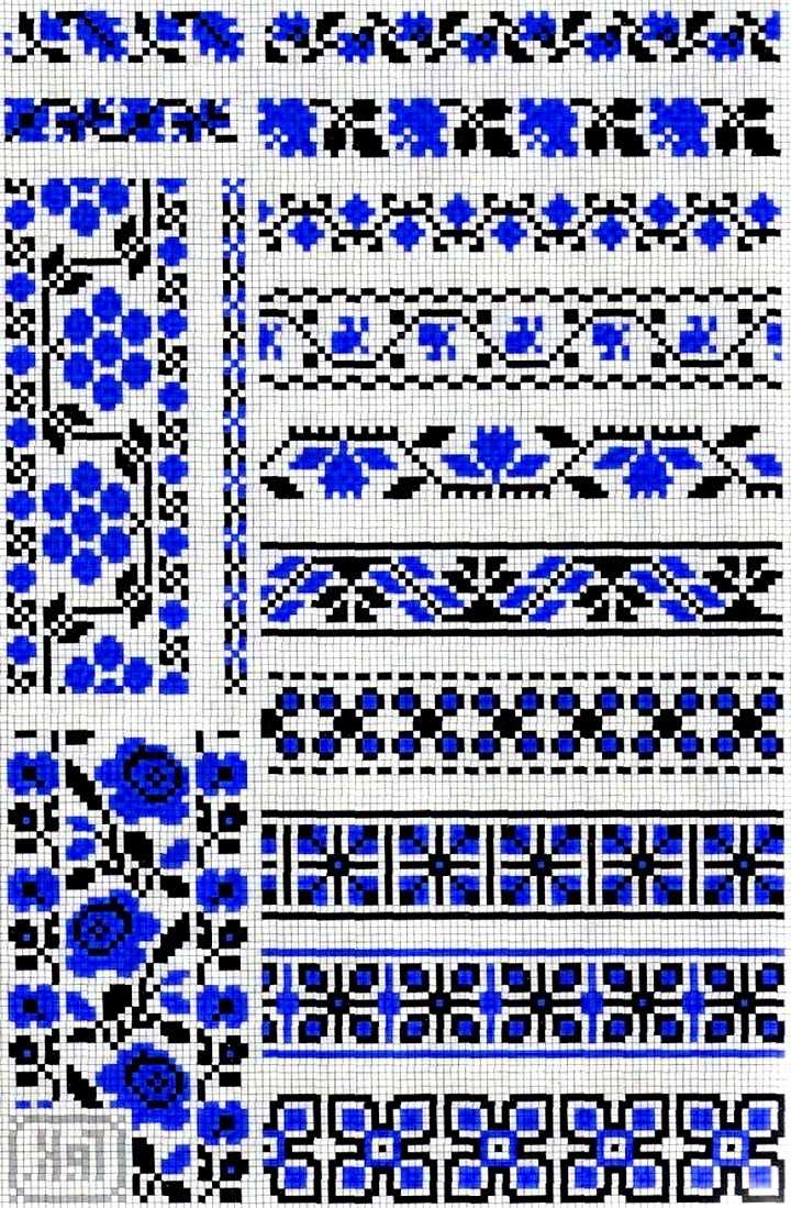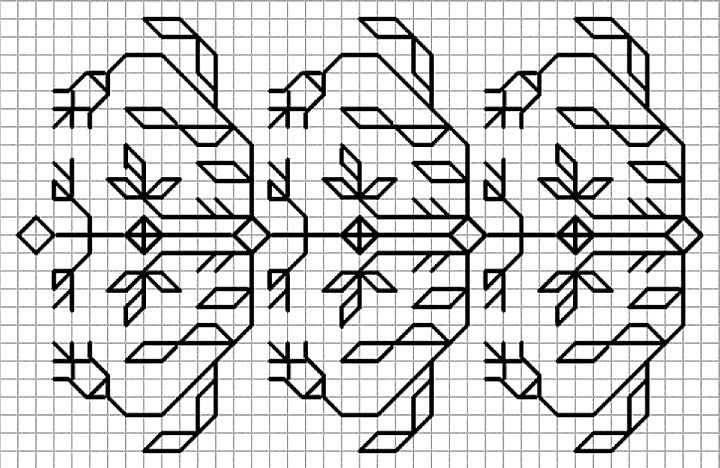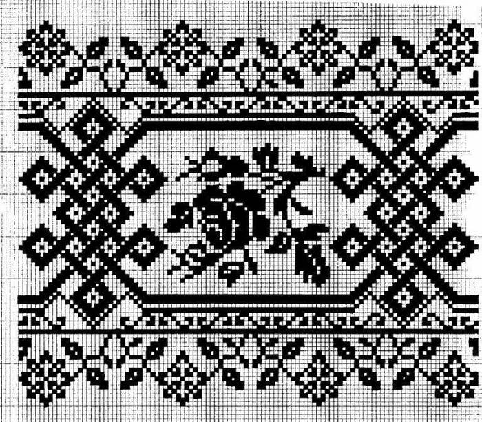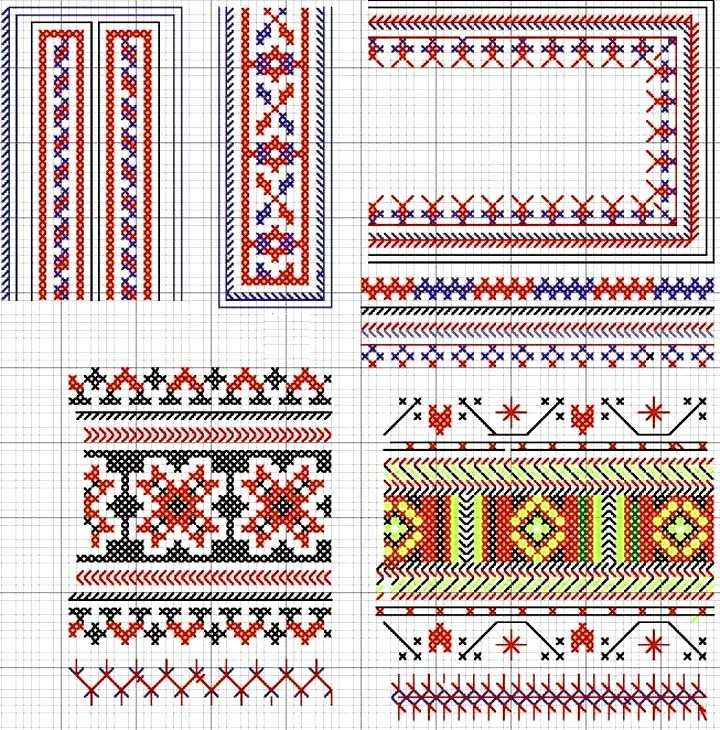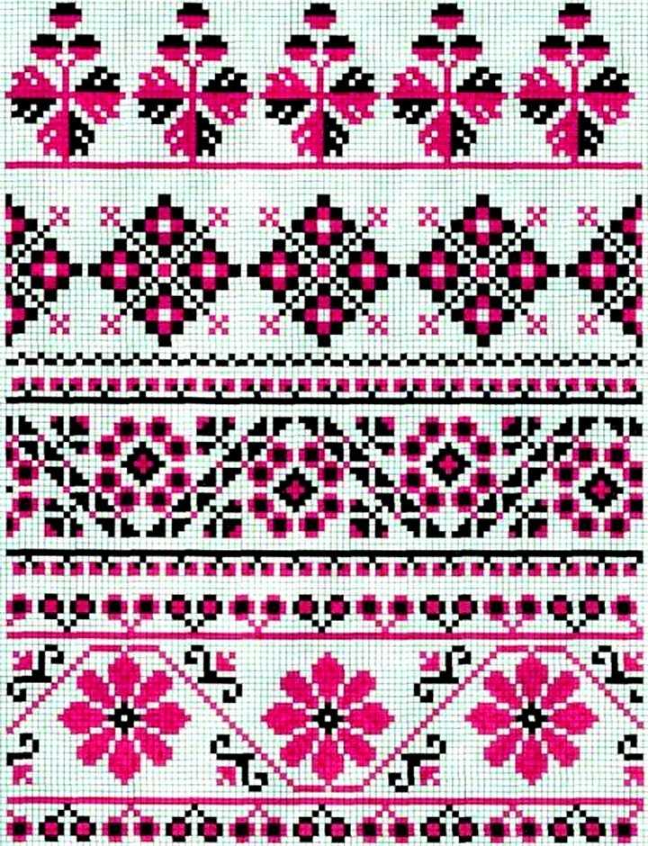 Геометрические орнаменты вышивки крестом имеются в национальной одежде нескольких народов. Узорами украшают полотенца для ритуалов, создают рисунки из сочетания различных фигур. Узкий орнамент это – повторение групп элементов вышивки в определённой последовательности.