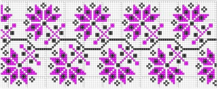 Иногда орнаментом нужно оформить рамку или обшить рушник по периметру. Для этих целей отлично подойдет следующая схема, выполненная в мотивах.