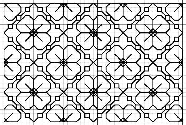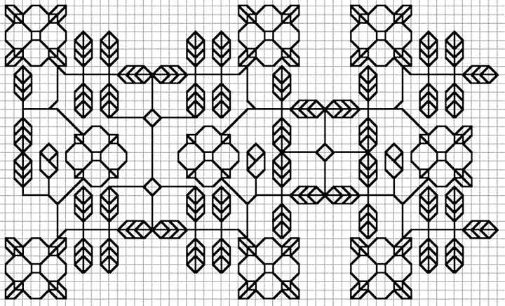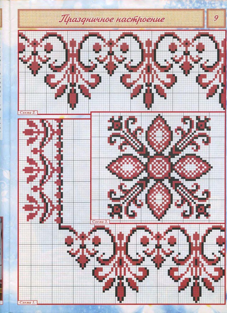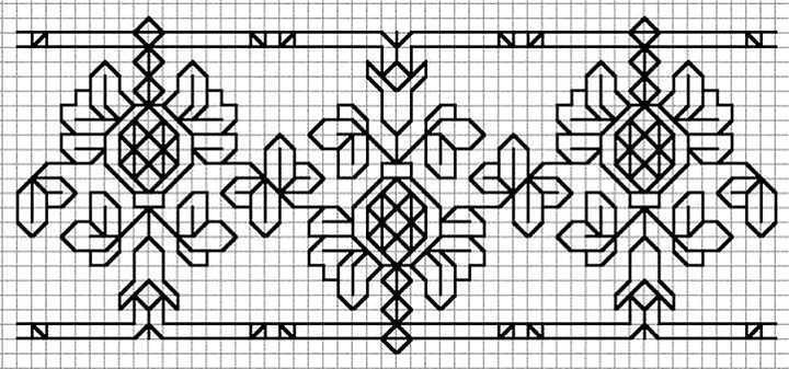 - для качественного рисунка зашивайте пространство между элементами орнамента крестиками, выполненными белыми нитями.