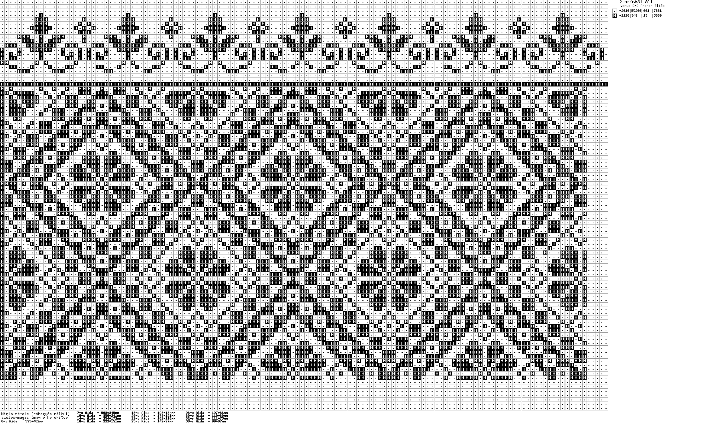- размер верхней левой: 37х37 крестиков, на полотне занимает площадь 6,7х6,7 см;