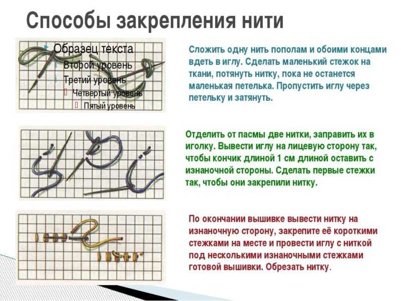 Начинают вышивать и завершают этот процесс путем фиксации нити. Каждой рукодельнице стоит изучить, как выполняется эта задача. Эта полезная информация представлена на картинке.