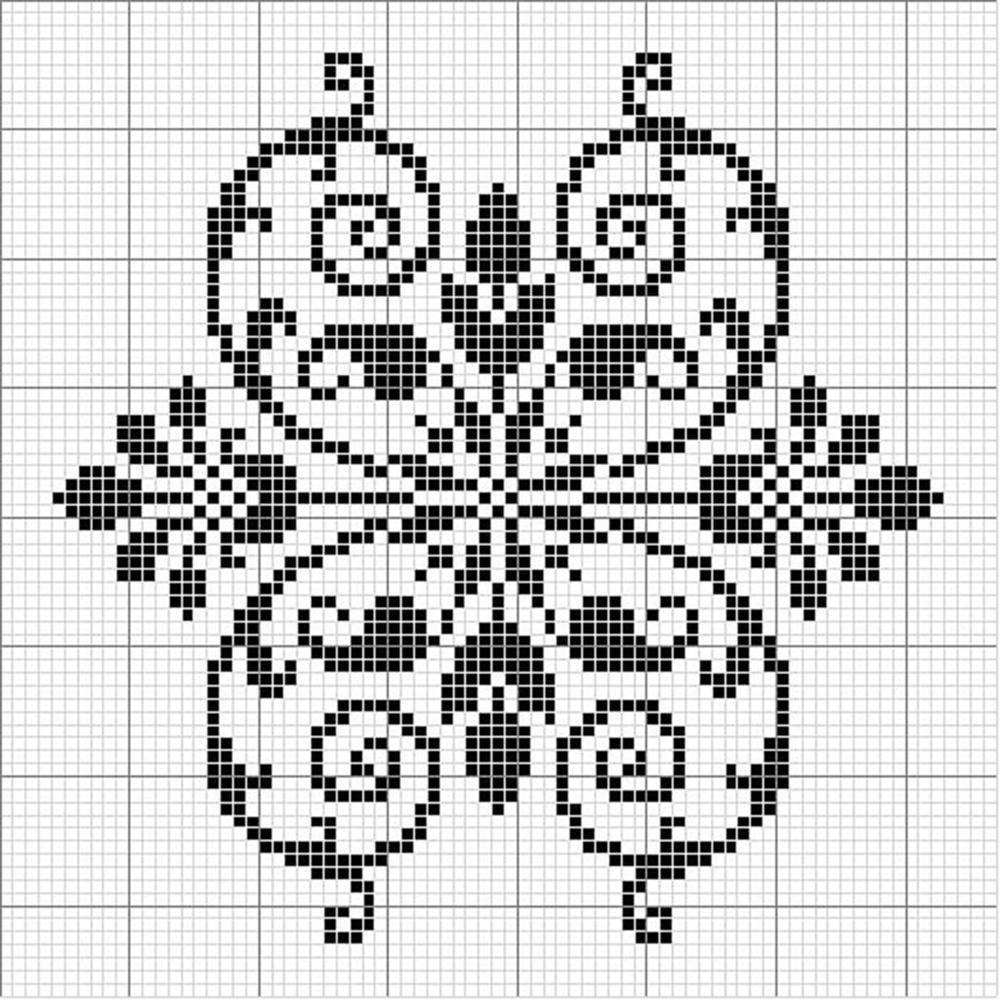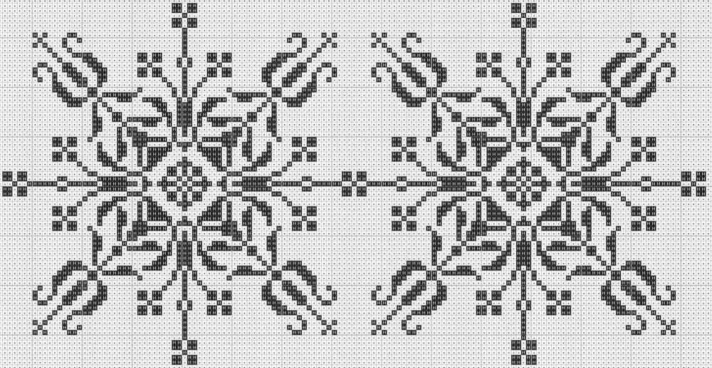 Эту схему вышивки крестом можно отнести к орнаментам. Такими снежинками вполне можно расшить подушки. Узор прост в исполнении, но смотрится очень эффектно, особенно на цветной канве.