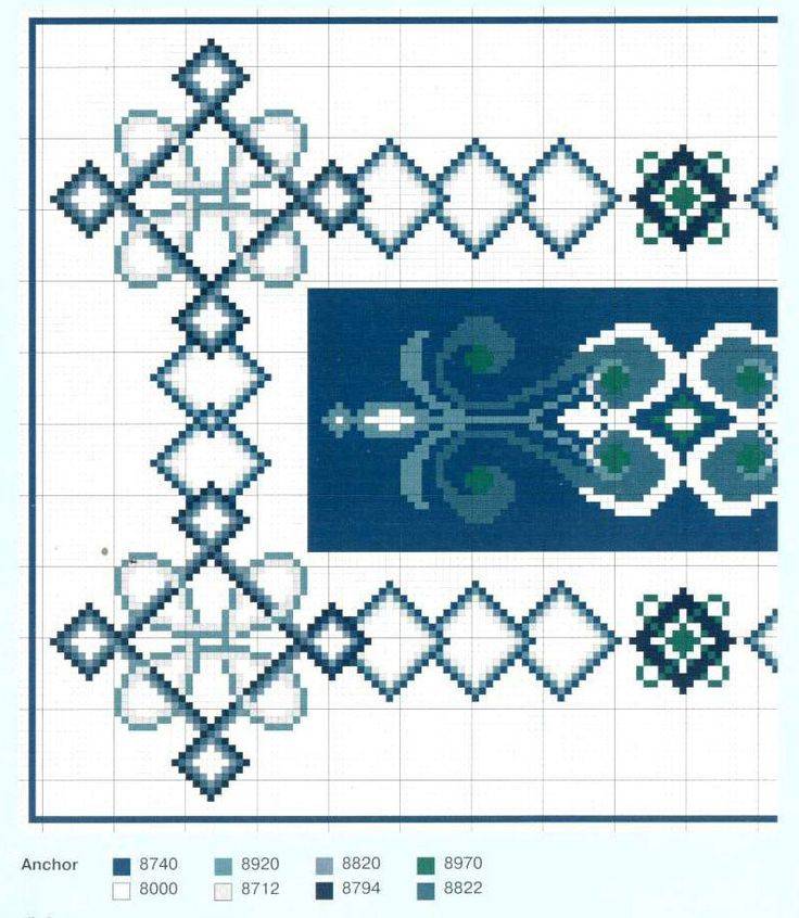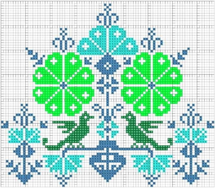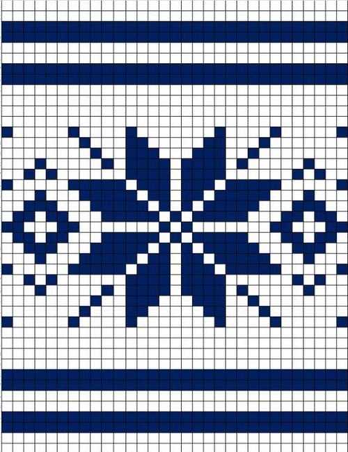 - рисунок отлично смотрится при сочетании темно-синей и голубой нитей;