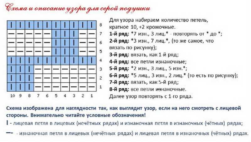 Сокращения: лицевая петля – лиц. п., изнаночная – изн., кромочная – кромоч., накид – нак., вместе – вм., маркер – мк.