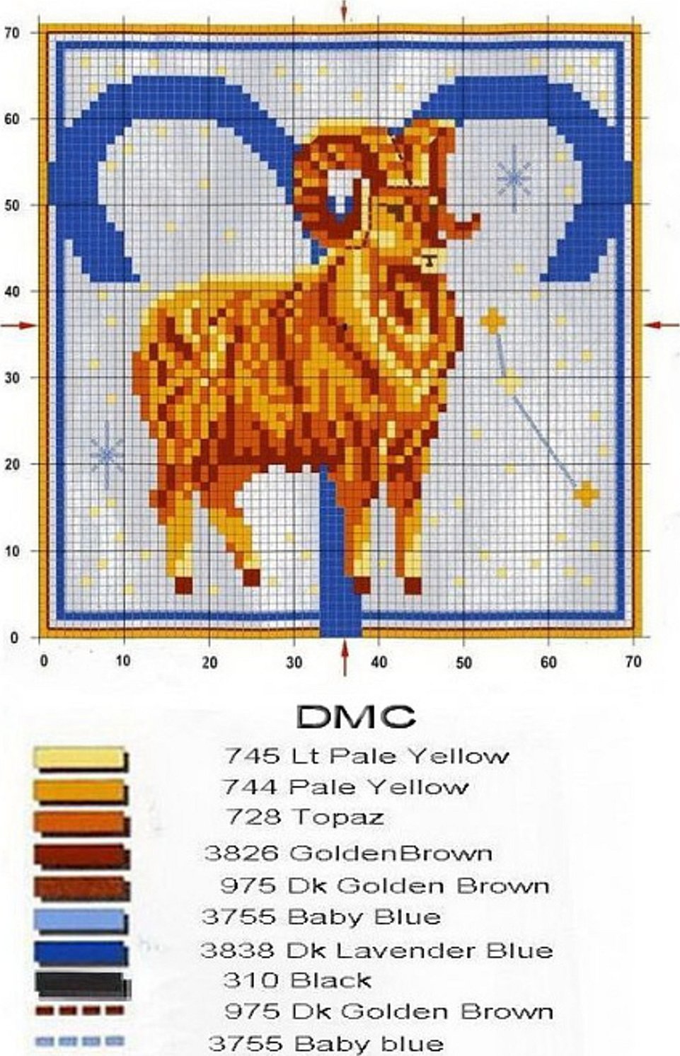 Схема для вышивания Овна из комплекта с набором цветов и полезных советов