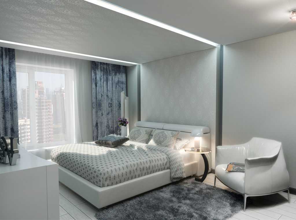 Натяжной потолок в хрущевке обойдется дороже, чем подвесной. Несмотря на то, что высота потолка в малогабаритной квартире, как в кирпичном, так и панельном доме не более 2,5 метра, это не является причиной отказа от создания натяжного потолка: если монтаж светильников не планируется, то полотно располагается на расстоянии 3-х сантиметров от перекрытия (подробнее: «Необходимо знать — на сколько опускается натяжной потолок «). Ни в зале, ни в спальной комнате это не будет заметно. При наличии осветительных приборов потолок опустится на 5 — 15 сантиметров.