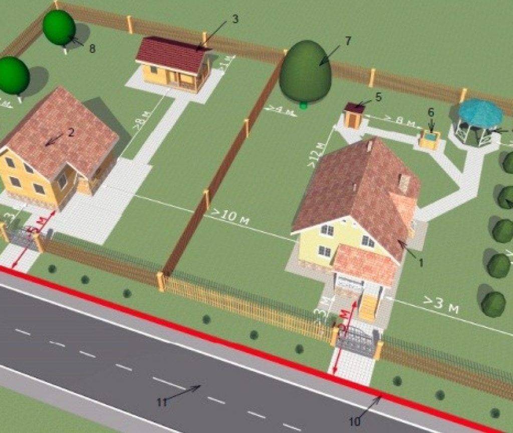 Строительные нормы и правила устанавливают следующие рекомендации для размещения построек и иных объектов: