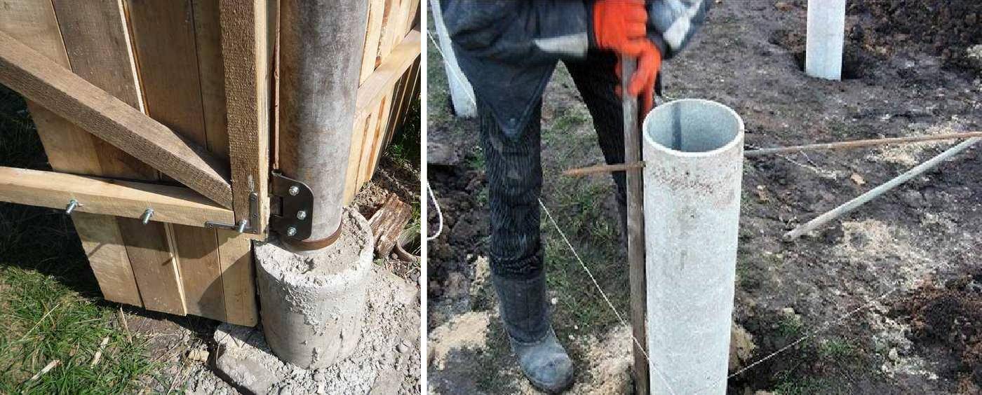 Варианты фундамента для забора с использованием асбестоцементных труб.