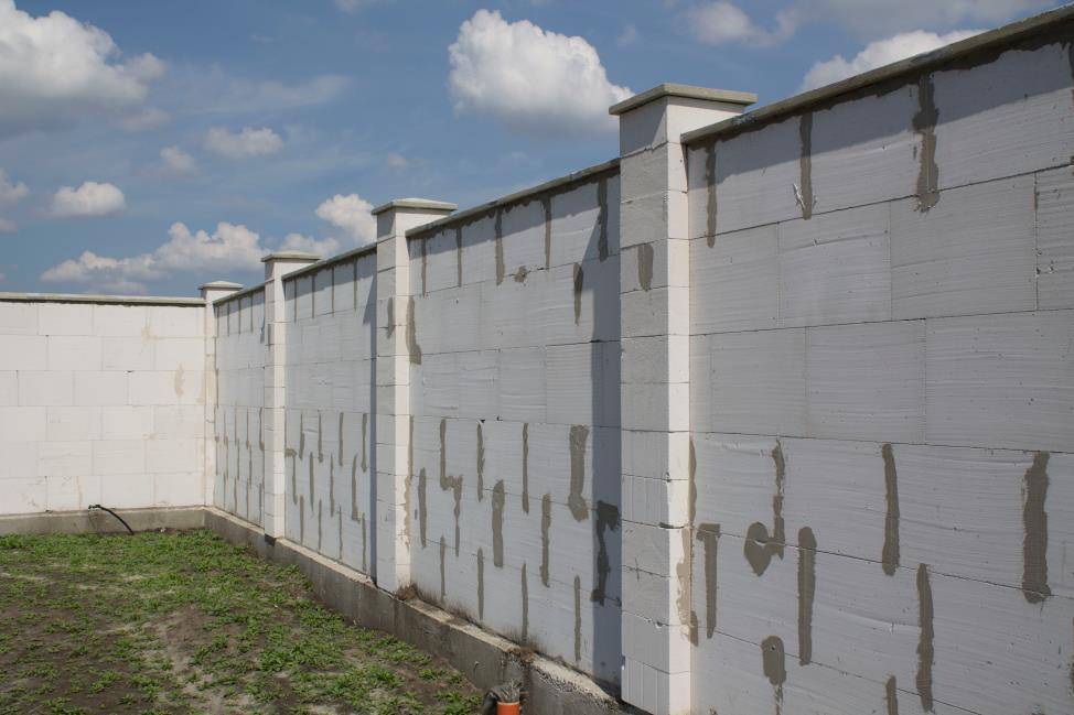 С помощью таких блоков можно построить забор, который не требует дополнительных отделок и обработок. Естественно, такой материал отличается по ценовой политике от гладких газобетонных блоков.