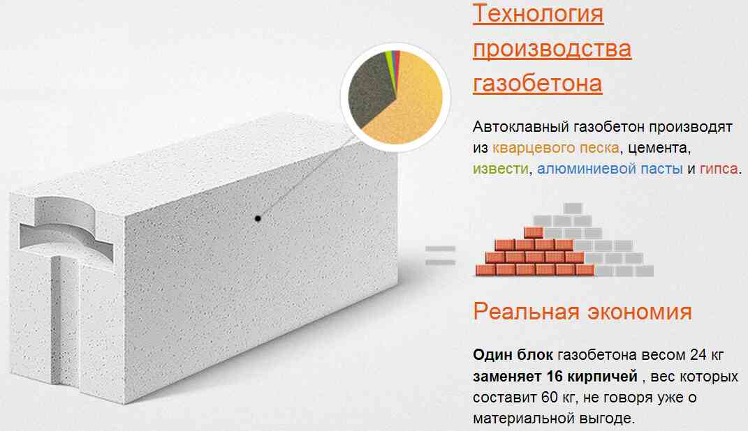 Смесь, из которой сделаны блоки, также отличается по составу. Чаще всего встречаются на строительном рынке газобетонные блоки из: