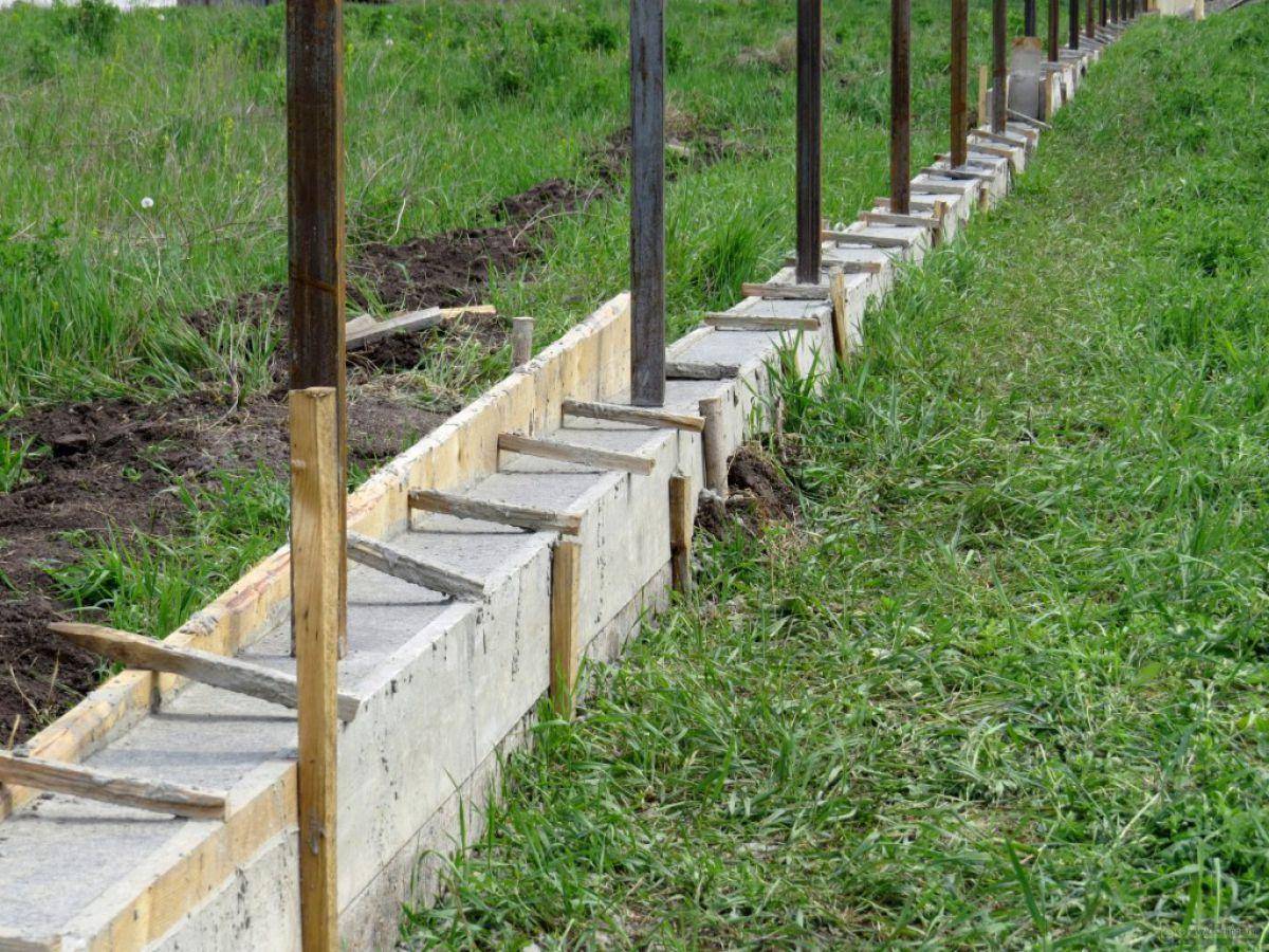 - В подготовленные ямы ставят столбы, заливают готовой бетонной смесью. Оставляют состав набирать прочность не менее 4 суток.