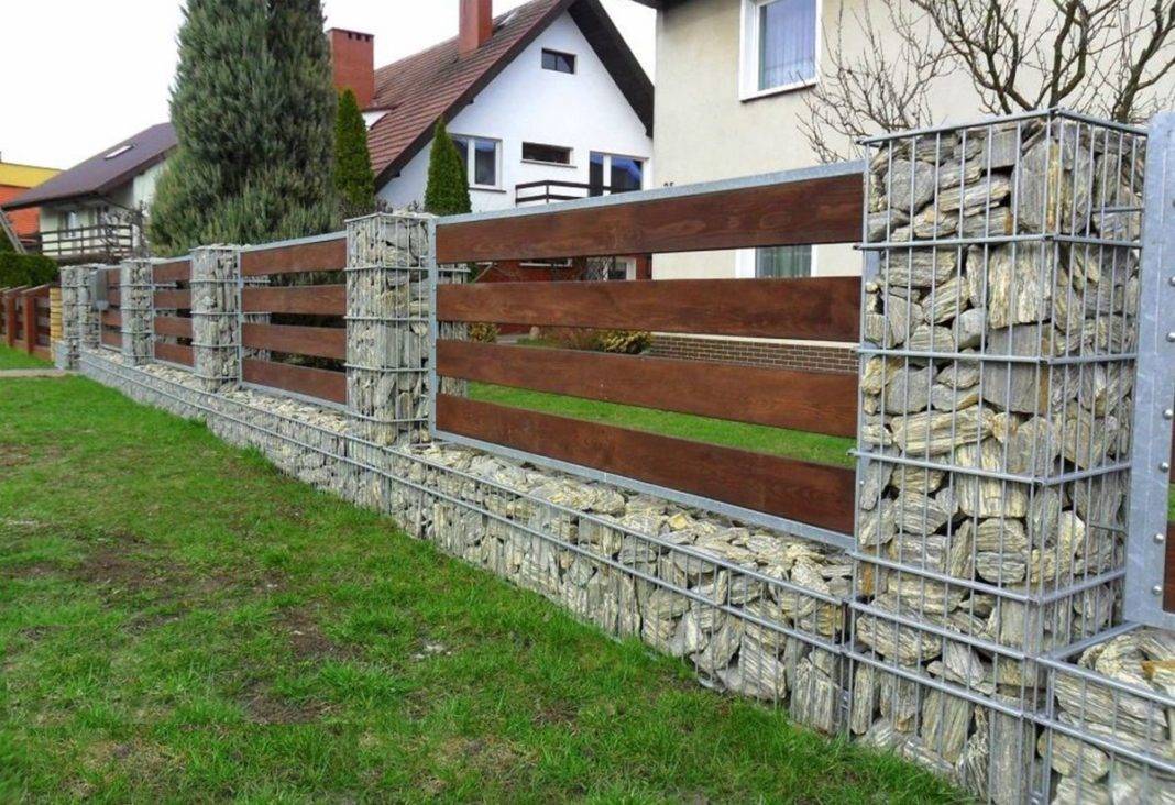 В последнее время все большую актуальность набирают такие заградительные сооружения, как заборы из габиона. Современные ландшафтные дизайнеры предлагают использовать их вместо стандартных кирпичных ограждений. Такой элемент дизайна представляет собой объемную сетчатую конструкцию, внутри которой может находиться битая черепица, кирпич, камень, древесные спилы.