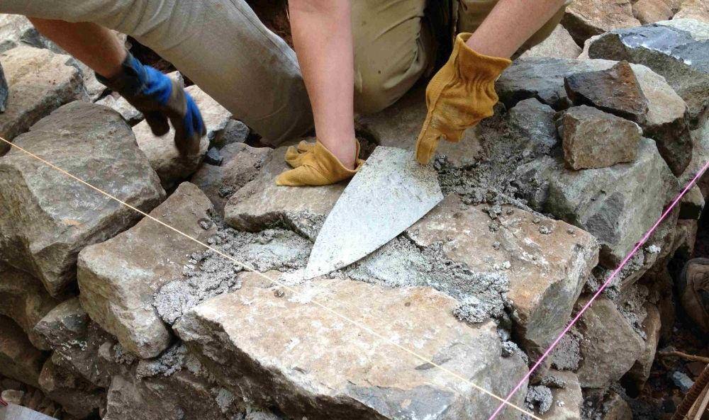 Камни выкладывают плотно, чтобы не оставалось пустого пространства.