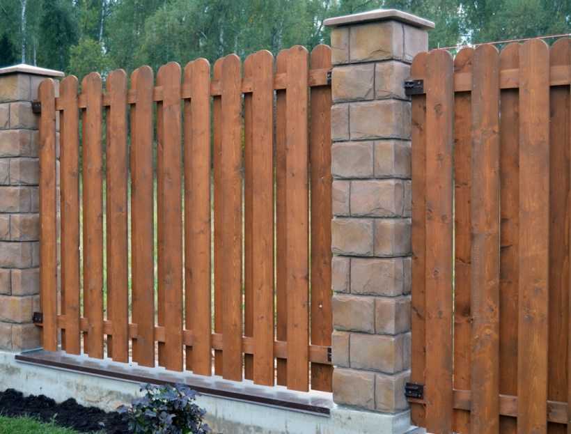 При строительстве облегченных конструкций – ограждений из штакетника, поликарбоната или сетки-рабицы – достаточно использования прочных металлических или деревянных опор достаточной толщины. Их можно дополнительно упрочить с помощью заливки бетоном.