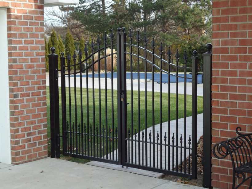 Распашная конструкция считается наиболее дешевым вариантом. Она простая в монтаже и эксплуатации. Еще одно преимущество подобной конструкции заключается в возможности встраивания в ворота. Это позволит упростить процесс установки, а также уменьшить количество опор.