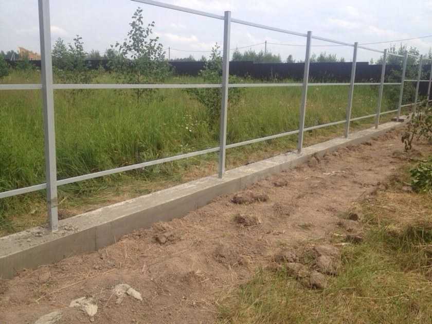 Количество поперечин определяется общей длиной пролетов и высотой забора: до двух метров — два ряда, выше — три ряда.