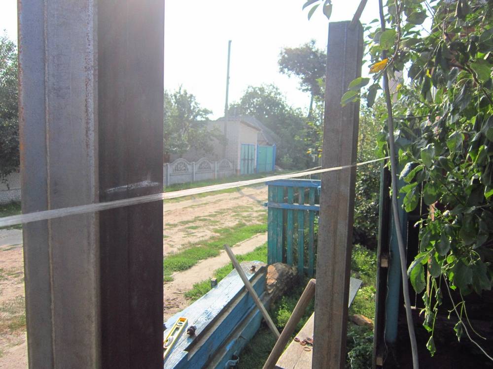 Столбы для забора из профнастила изготавливают из труб размером 80х80 мм стенка не меньше 3 мм. Можно использовать два подходящих швеллера такого же размера.