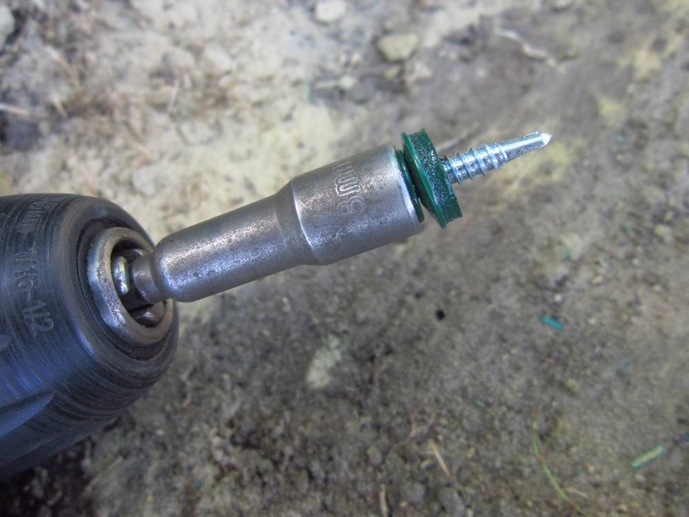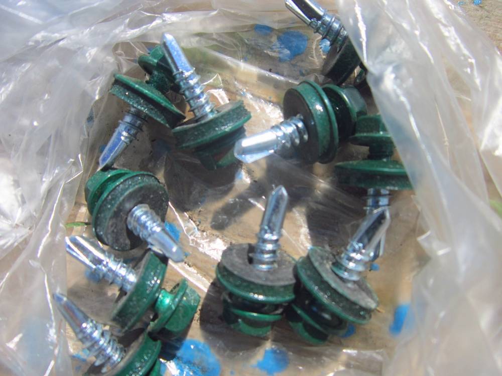 Саморезы кровельные. Требуются для крепления профнастила. Они выпускаются различных цветов, поэтому их можно подобрать в тон профнастила. Использование таких саморезов не требует сверления отверстий, они отлично входят в металл.