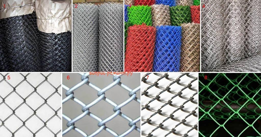 Монтаж забора из сетки-рабицы возможен не из всякого ее вида, которых в производстве и продаже десятки, если не сотни. «Черная» рабица из конструкционной стали без покрытия (поз. 1 на рис.) – штукатурная и армирующая сетка, для наружного применения не предназначенная: быстро ржавеет, плохо держит покраску, довольно хрупка и начинает рваться от ветров еще скорее, чем проржавеет.