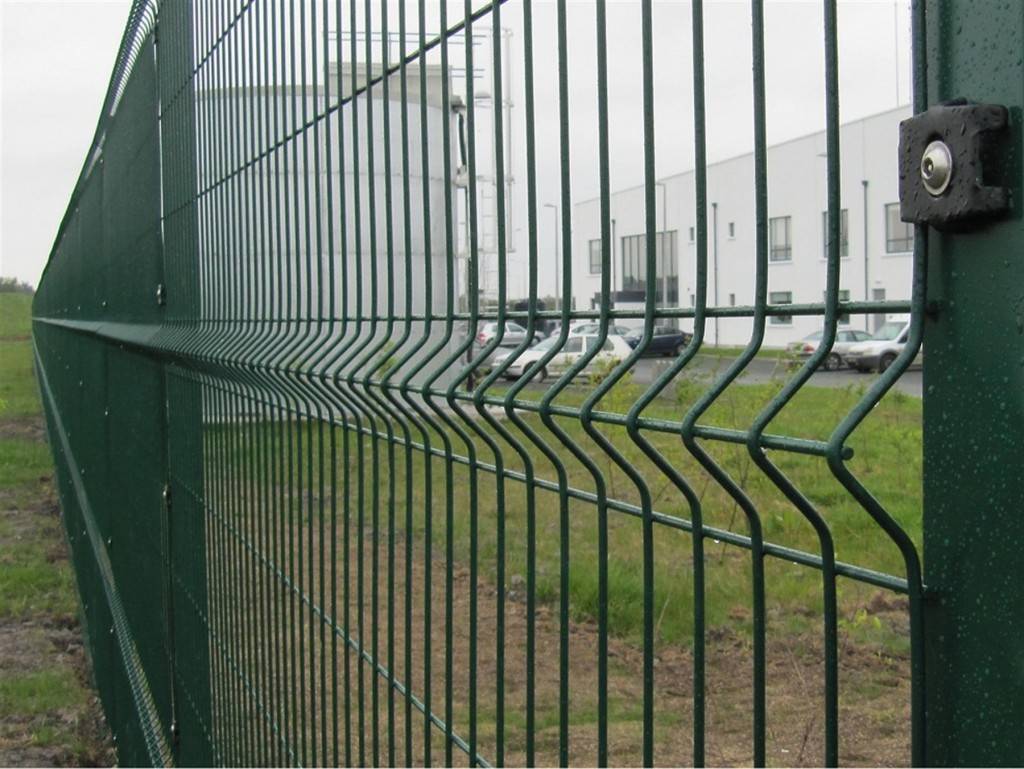 По этому признаку выпускаются сварные сетки 2D и панели 3D. Первый вариант делают в виде плоской конструкции без выступов и изгибов. Окраска по умолчанию зеленая, но можно заказать другой цвет. У сварных сеток 3D, за счет поперечных изгибов, высокая устойчивость к механическим воздействиям, не уступающая кирпичной кладке. Внутри изгибов удобно прокладывать провода.