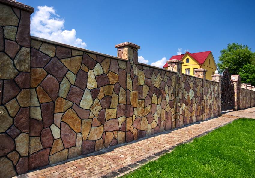 Интересный пример отделки бетонного ограждения под натуральный камень