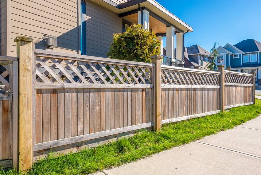 Кроме перечисленных видов ограждений для дома, которые приходится собирать из отдельных деталей, используются готовые заборные секции в виде рамок с различным заполнением – решетками, планками, плетенкой.
