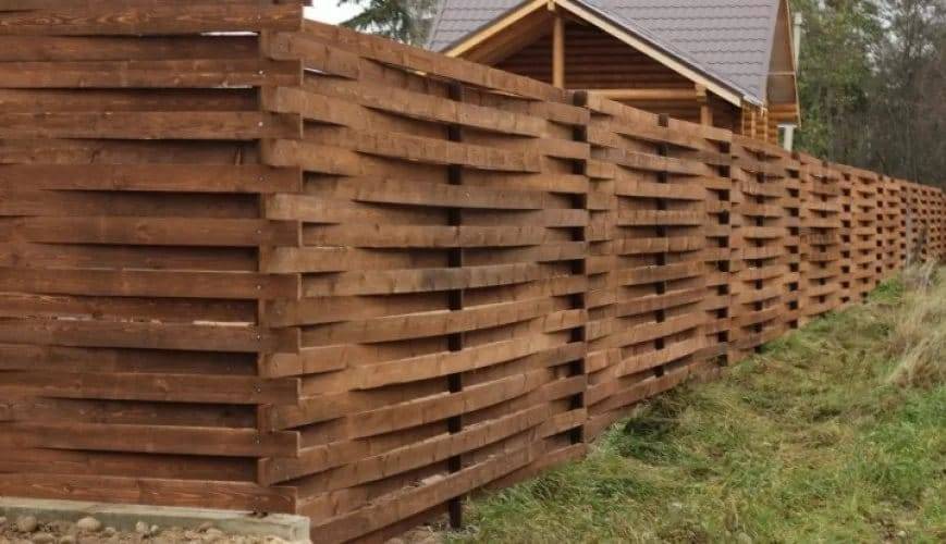 Деревянный забор шахматка горизонтальная