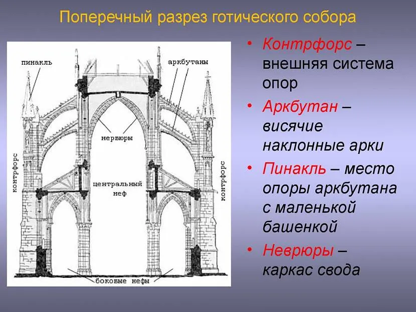 В Средние века в готическом стиле строились в основном соборы – центры религиозной жизни любого города Западной Европы. В эпоху готики соборы стали символами созданной богом Вселенной, ее гармоничного устройства. Общую «симфонию» воплощал и характерный для этого архитектурного стиля синтез всех искусств: зодчества, скульптуры, театра, музыки, живописи, декоративно-прикладного.