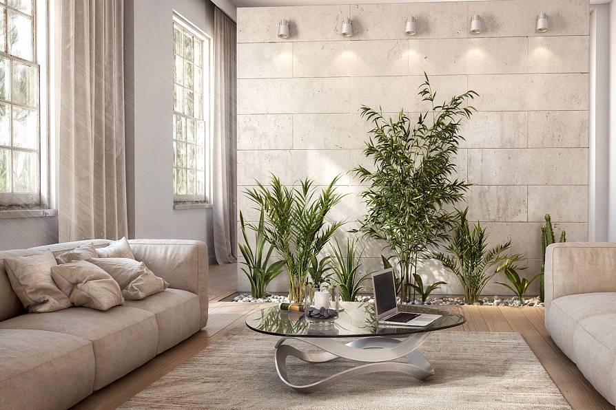 Скандинавский интерьер любит много естественного света, поэтому в домах большие панорамные окна, часто без занавесок. В доме тепло, просторно. Здесь мало мебели, но все стоит на своих местах и доставляет максимум функциональности и практичности хозяевам. Здесь много природных материалов — камень, дерево, глина, пробка. Здесь есть растения, их много, они в разных горшках, разного размера. Растения с сочными зелеными листьями можно найти даже в ванной комнате — они придают уют и насыщают комнату свежестью.