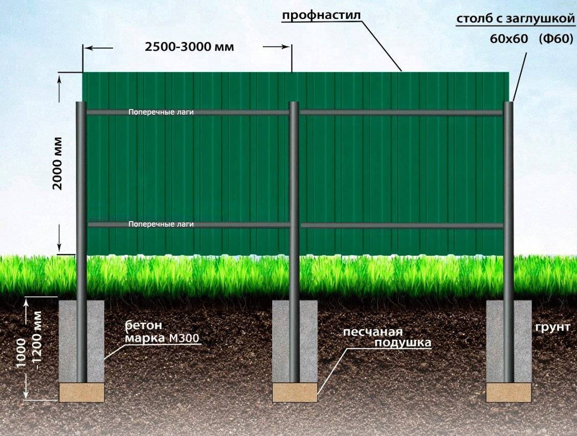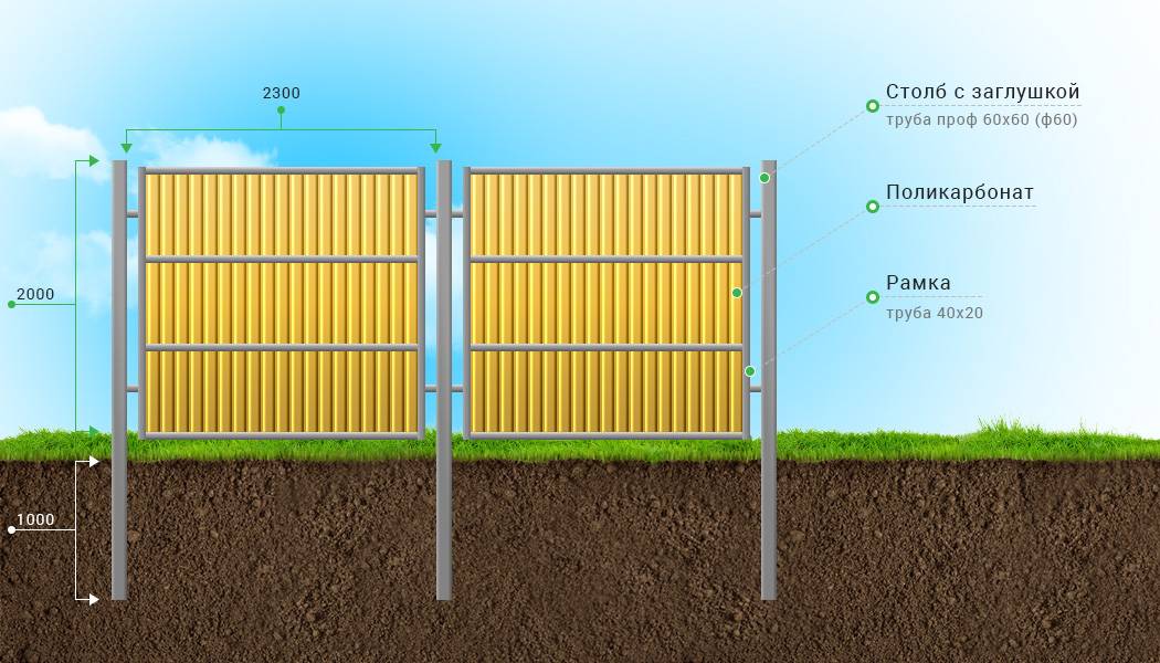 - Ограждение такого типа имеет парусность. Имеет смысл установки дополнительных ребер, которые будут принимать на себя избыточную нагрузку.