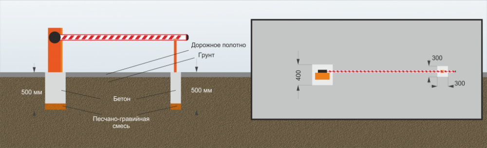 Методика заключается в разметке и последующей подготовке участка специалистом. Далее место заливают бетоном и выставляют стойку шлагбаума.