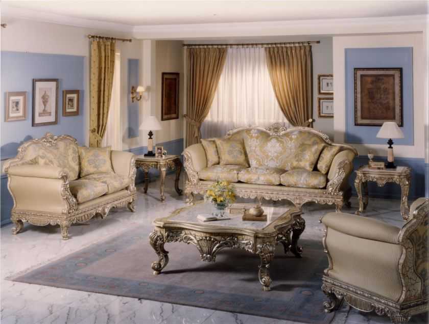 Короли достойны самого лучшего — ключевая фраза при подборе мебели для гостиной в стиле барокко.