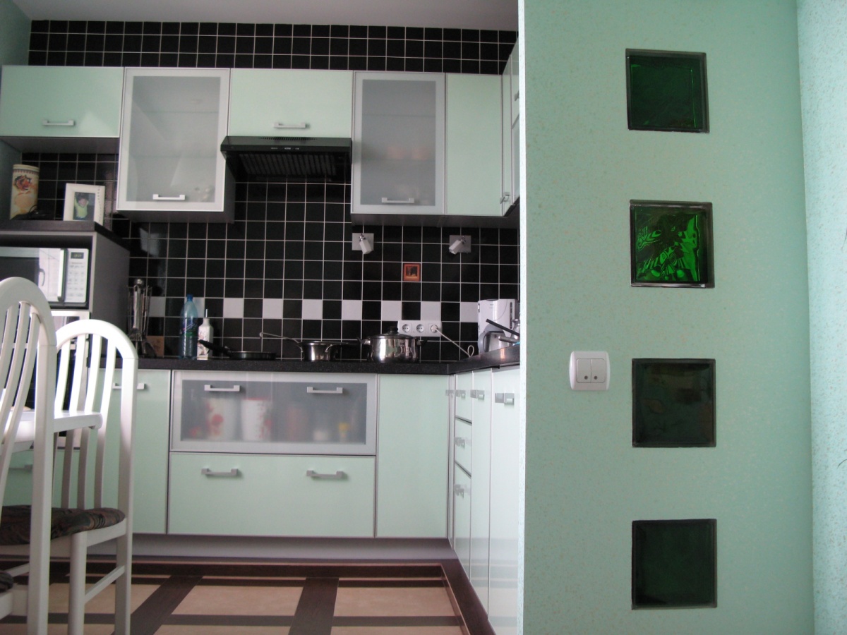 Деление кухни и гостиной маленькой перегородкой возле окна