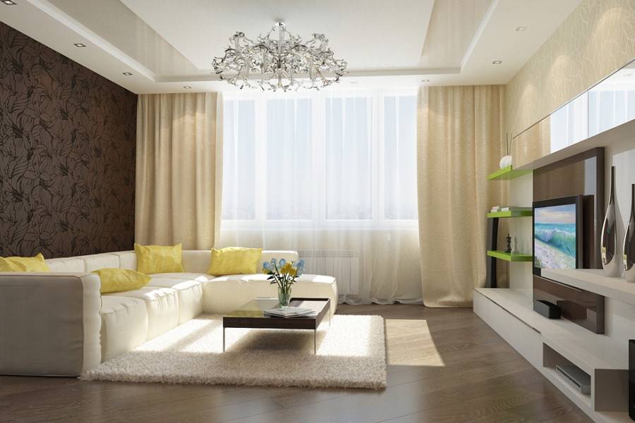 Функциональность разных зон обеспечивает мебель трансформер и рациональное использование площади. Нам в руки попадает уже готовый дизайн с расстановкой раскладных диванов, компактных школьных уголков с кроватями на втором ярусе. Наша задача создать своими руками соответствующий фон для каждого участка. Как пример, отделка зала в малогабаритной квартире, фото демонстрируют разные варианты и стили.