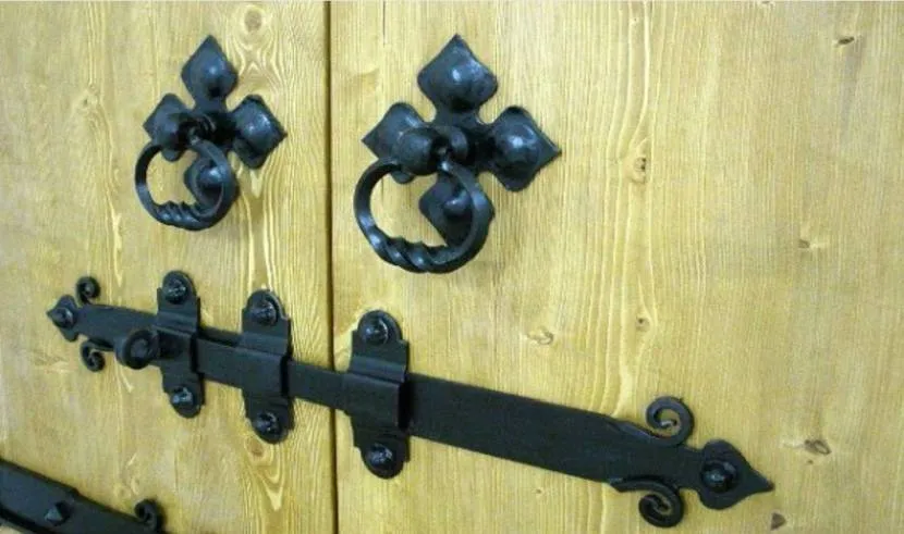 Распашные варианты остаются неизменной данью классике и традициям. Кованые ворота зачастую дублируются калитками, выполненными в том же стиле. На них принято устанавливать соответствующего дизайна рельефные ручки. Такая фурнитура часто идет в комплекте с электромеханическими или электромагнитными замками, монтаж которых желательно доверить специалистам. Кованые скобы и иная художественная фурнитура представлены в ассортименте и отличаются изысканностью и красотой. Их можно окрашивать в разные цвета, например, в черный, бронзу или золото. В процессе эксплуатации изделия следует периодически обрабатывать особым антикоррозийным раствором.