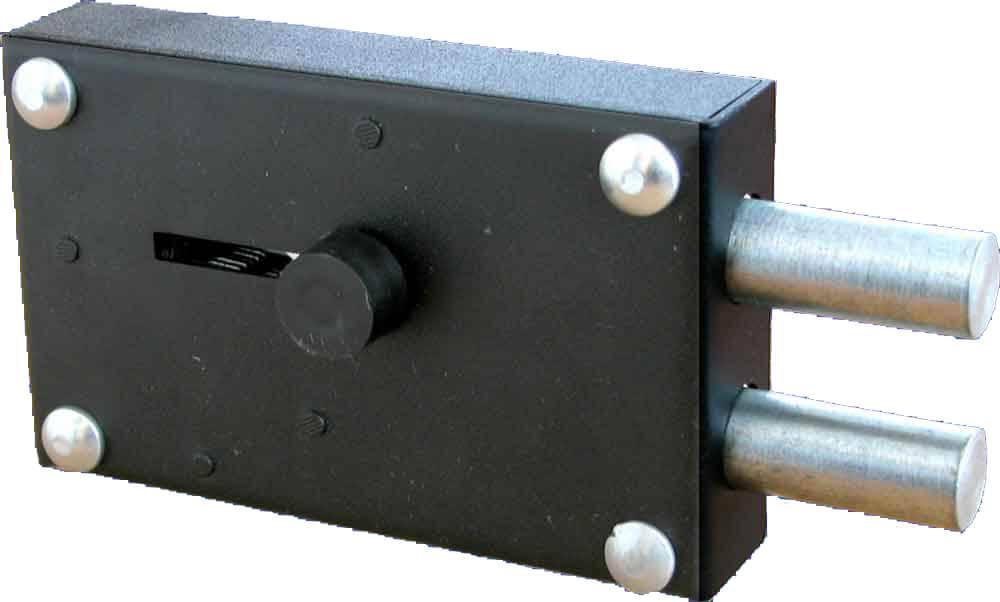 ,которые монтируются на створку ворот. Для лучшей защиты имущества, находящегося внутри гаража, монтируется такой замок, который с двух сторон можно открыть ключом.