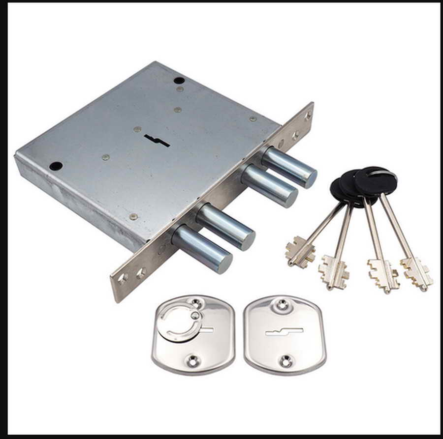 Большие врезные замки могут быть оборудованы дополнительным креплением для вертикальных тяг, которые позволят прочно зафиксировать массивную дверь или ворота по всей высоте створки двери. Удачным вариантом будет комбинация основного и дополнительного механизмов разного типа замыкания для более надежной защиты.
