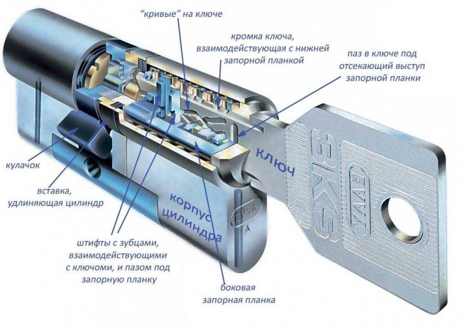 Личинка сделана в виде цилиндра, где находятся пины. Во время поворота ключа они устанавливаются на определенную высоту.