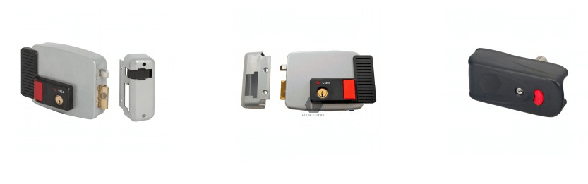 Принцип действия – магнитное поле, создаваемое электричеством. Система состоит из корпуса и ответной планки с высокой магнитной проницаемостью. Часто работают в паре с домофонами.