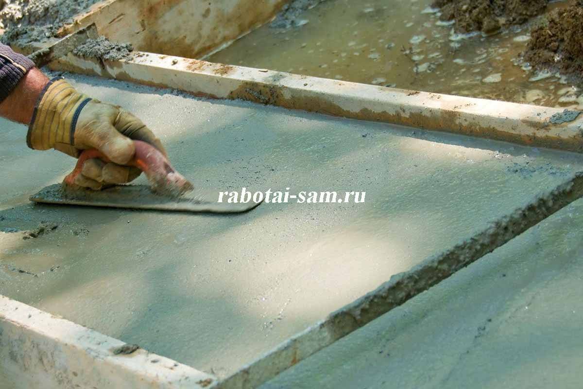 Консистенция бетона в смеси может быть намного меньше, чем при строительстве несущих конструкций и фундаментов для тяжелых сооружений. Достаточно будет замешать 1:3 с песком, если цемент марки М-200 или даже 1:4, при использовании марки М300 – М400