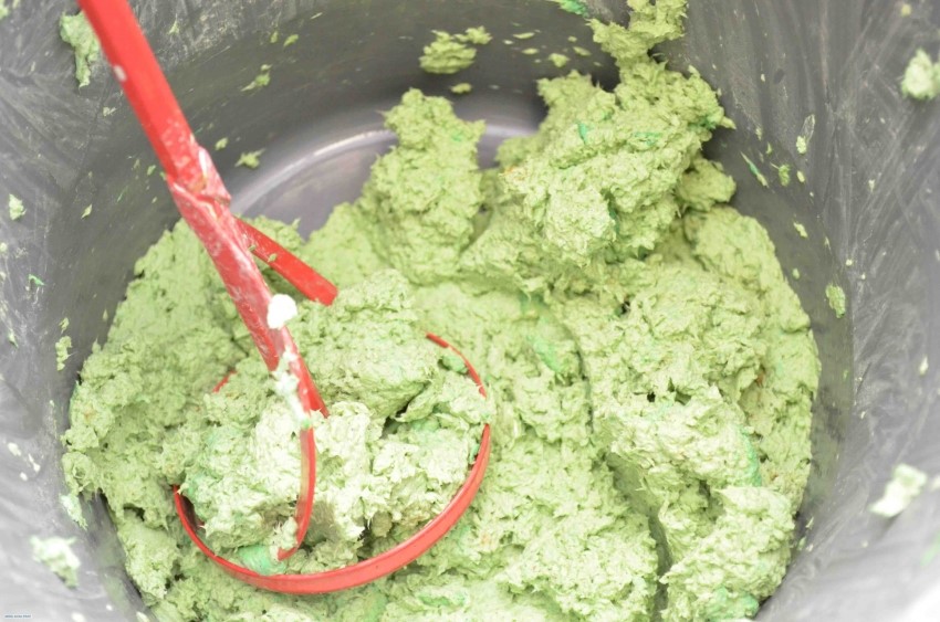 - Жидкая часть смешивается с сухой, до образования однородной массы,